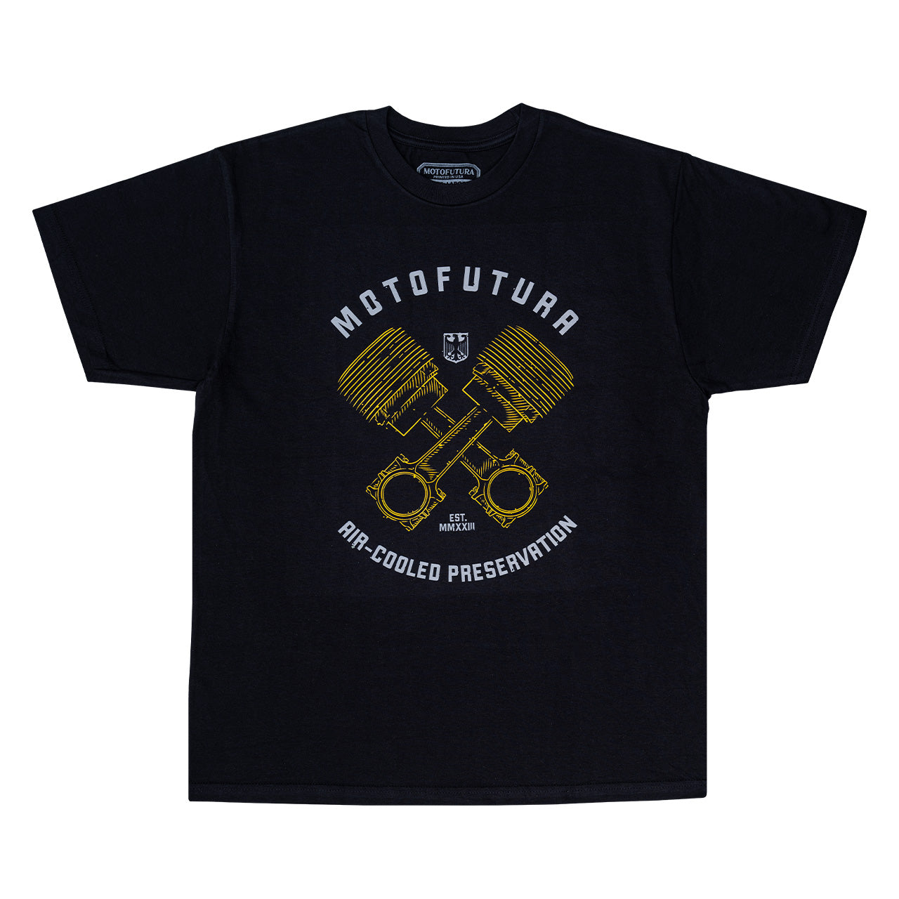 Show your love for the classic air-cooled rides with our "Air-Cooled Preservation Society" tee. Screen printed in the USA, this shirt sports a massive chest art piece on a black cotton t-shirt.