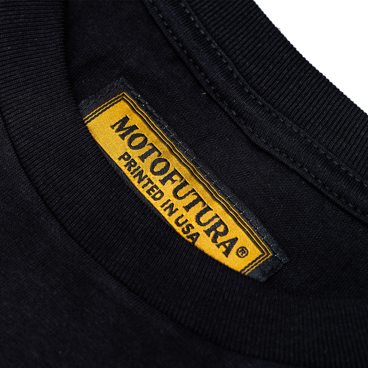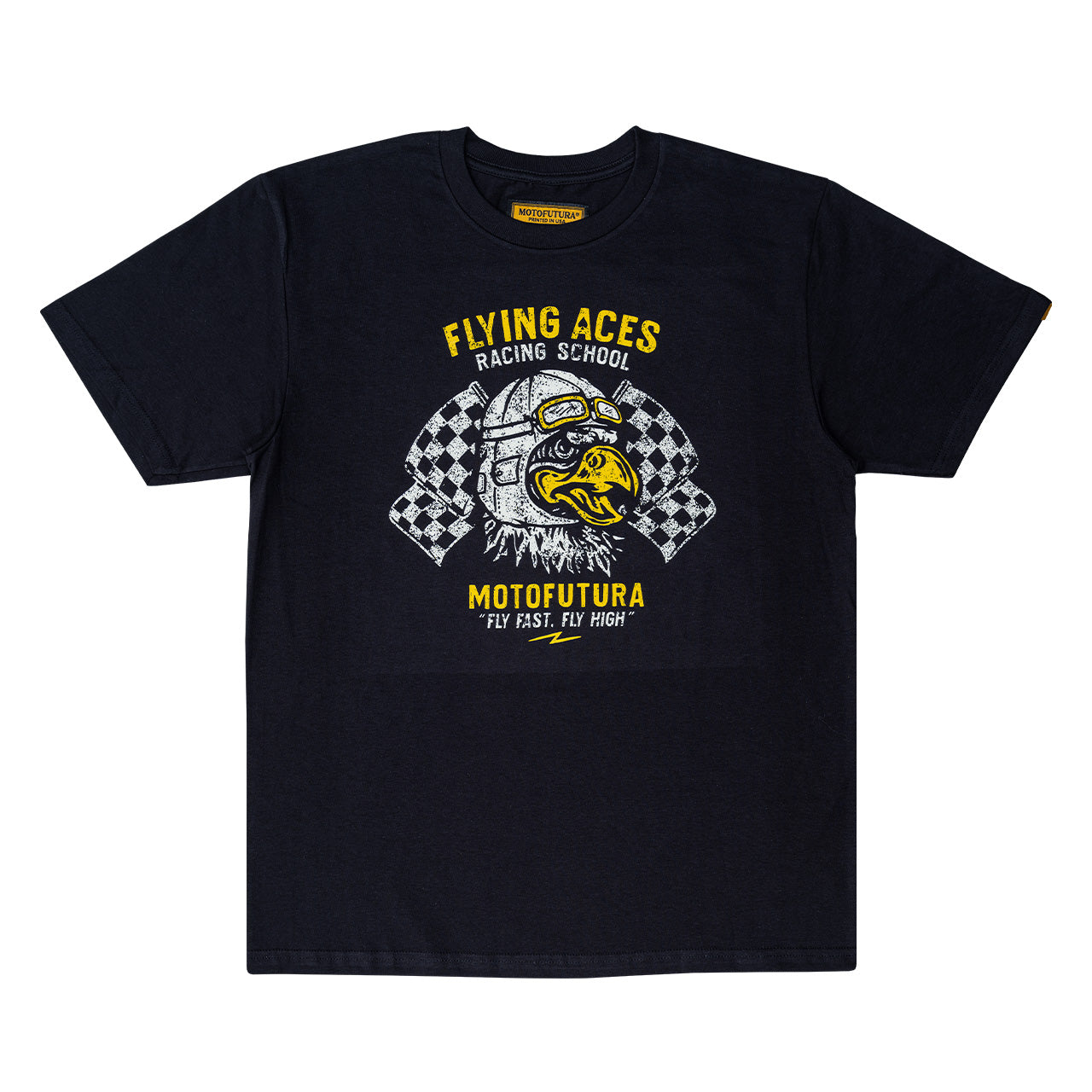 Look fly at the finish line wearing our "Flying Aces Racing School" tee. Featuring a screen printed chest piece done in the USA and our Motofutura logo hem tag on the left sleeve.
